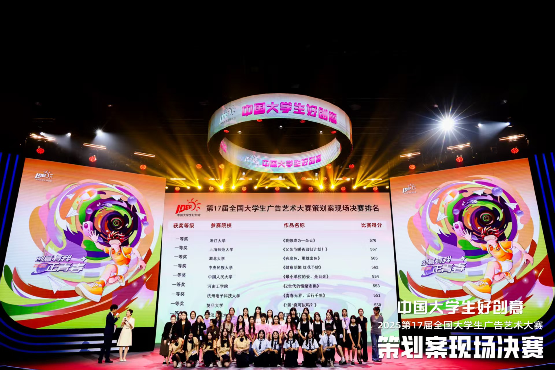 全国大学生广告艺术大赛是规模大、覆盖面广、参与高校多、作品水准高的国家级A类学科竞赛,迄今已成功举办17届。作为分量最重的策划案类赛道,本届大赛共收到来自近1900所高校的策划案作品共计20622组,经过多轮严格评审,最终仅14组分别来自14个命题单位的作品进入现场提案答辩,并最终决出一等奖10组,充分体现出竞赛的极高难度与权威性。